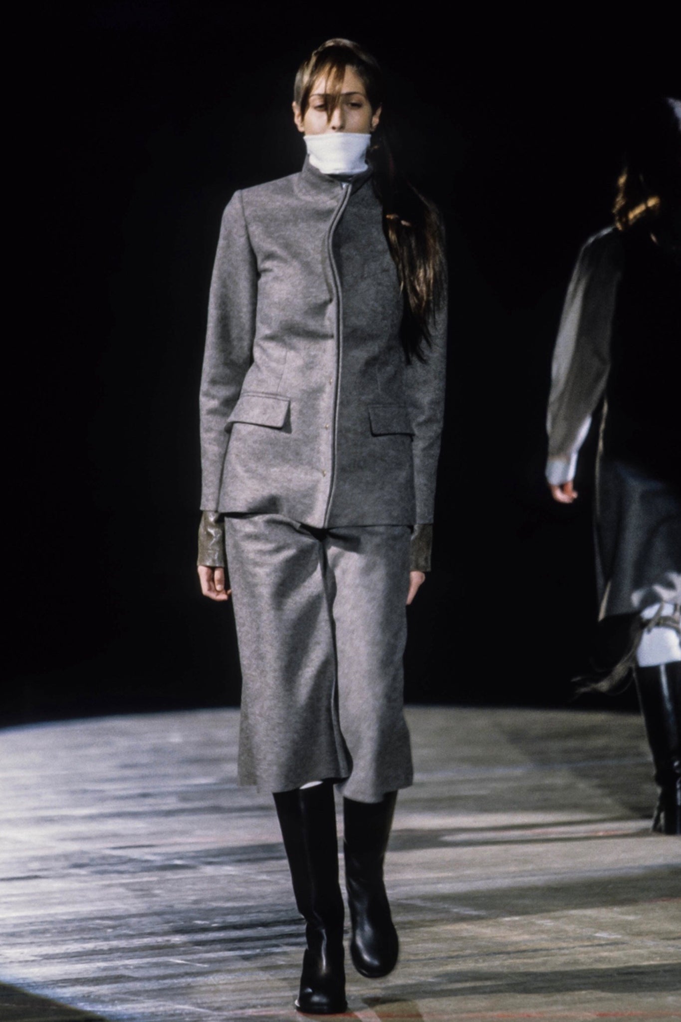 A.F. VANDEVORST CORSET BLAZER WITH FRONT FOLD FLAPS FROM FALL WINTER 2000 RUNWAY COLLECTION. IN GREAT CONDITION, ONE SMALL HOLE ON THE LAPEL, SEE LAST PHOTO. WHEN THE LAPELS ARE BUTTONED HOLE IS NOT NOTICEABLE AS IT IS ON THE THE INNER PART.