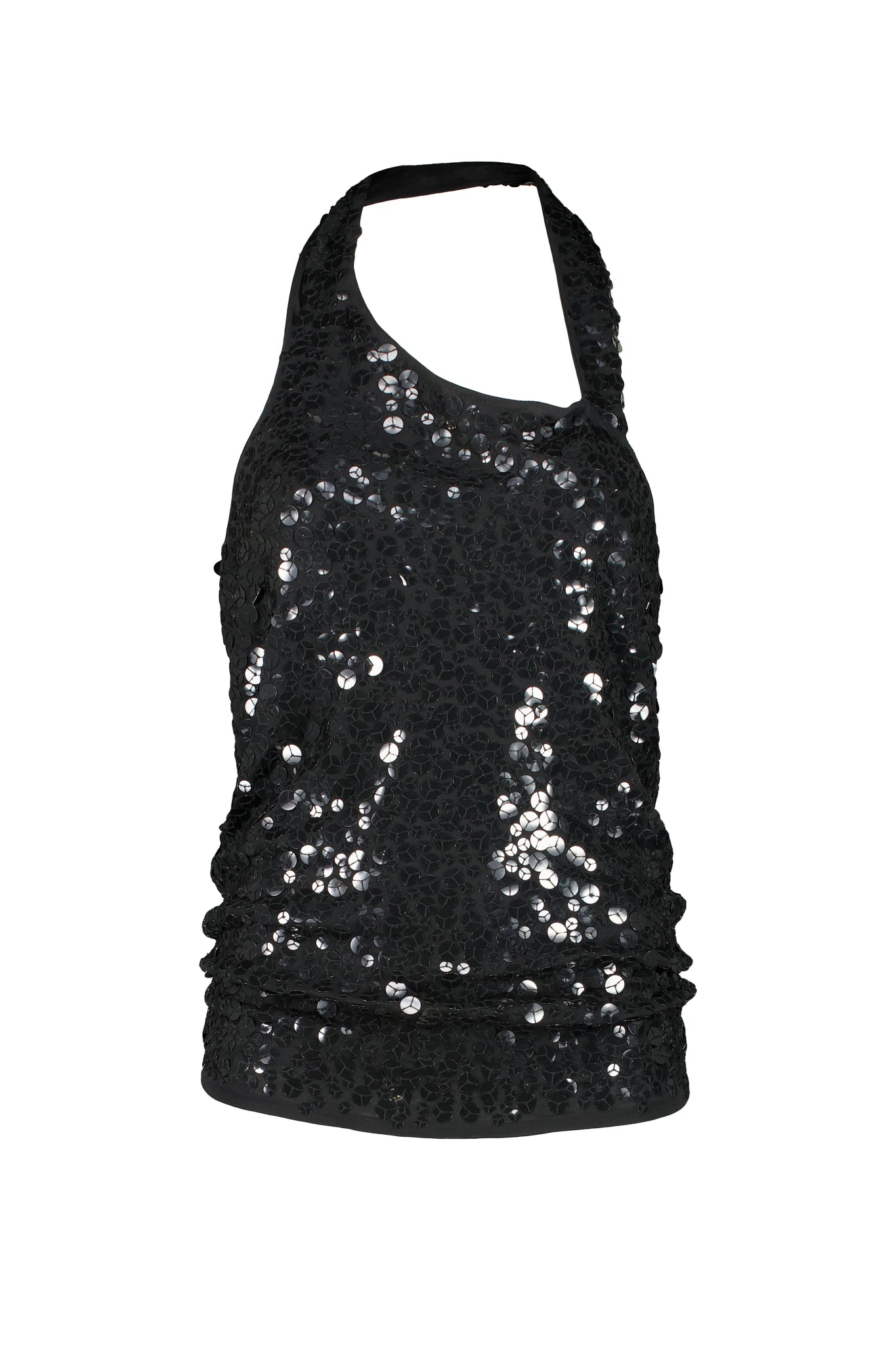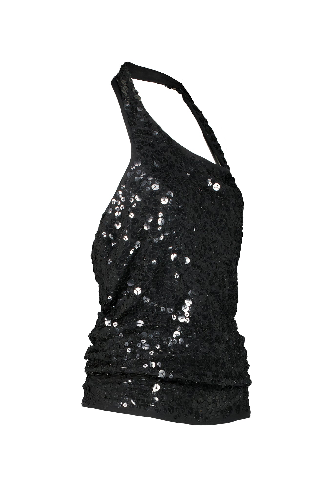 ALEXANDER MCQUEEN SEQUIN HALTER TOP FROM 2006. COMMERCIAL PIECE. IN GOOD CONDITION, SOME MISSING SEQUIN BUT NOT NOTICEABLE. CAN BE WORN WITH OUT ANY OBVIOUS ISSUES.