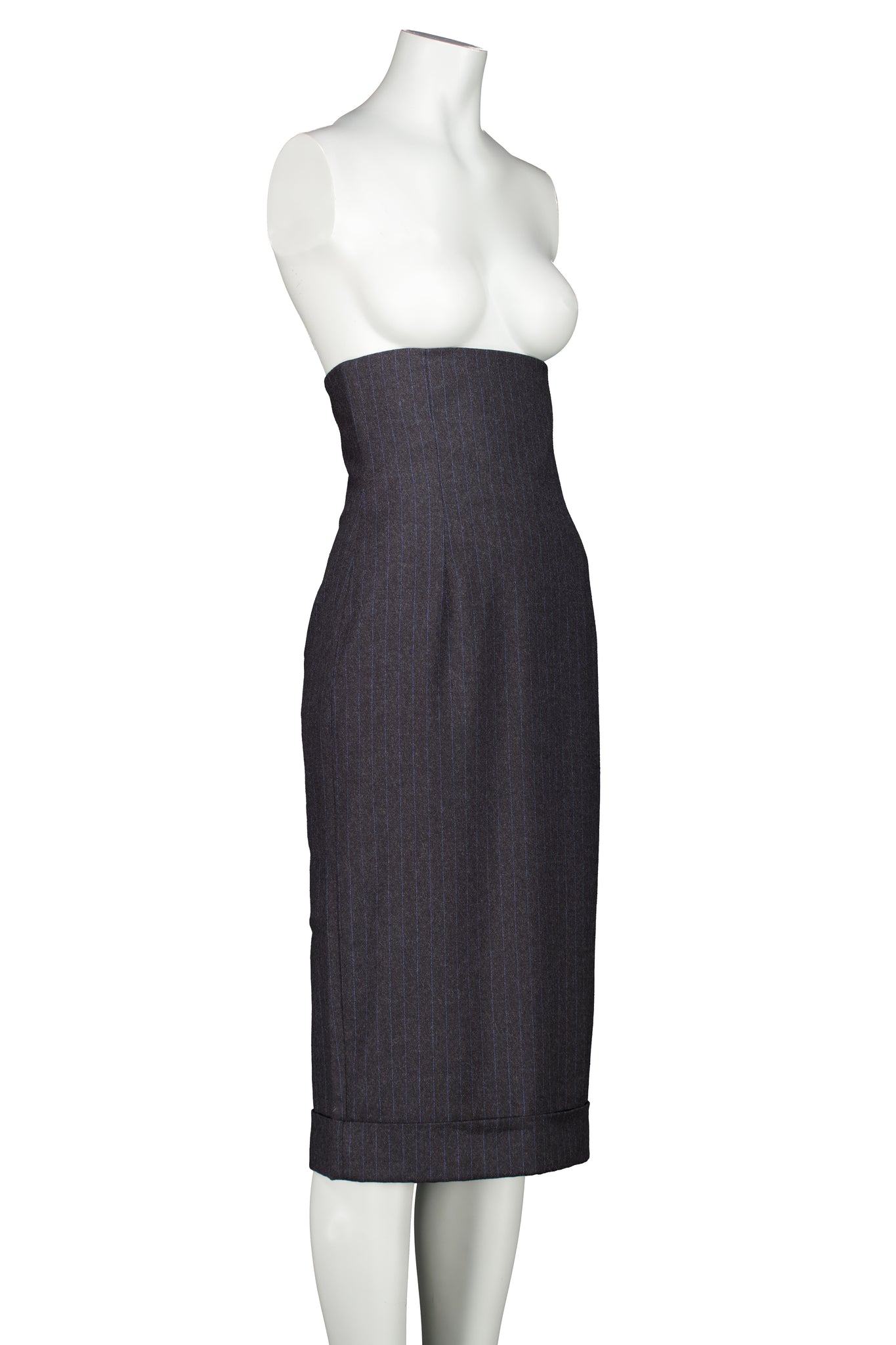ALEXANDER MCQUEEN EXTREMELY HIGH WAISTED SKIRT FROM FALL WINTER 1997 "ITS A JUNGLE OUT THERE" COLLECTION. IN EXCELLENT CONDITION.