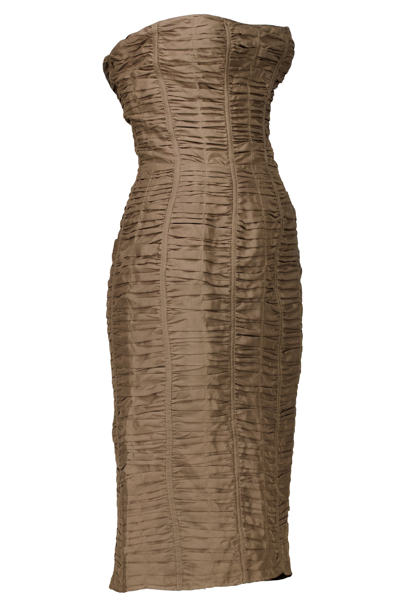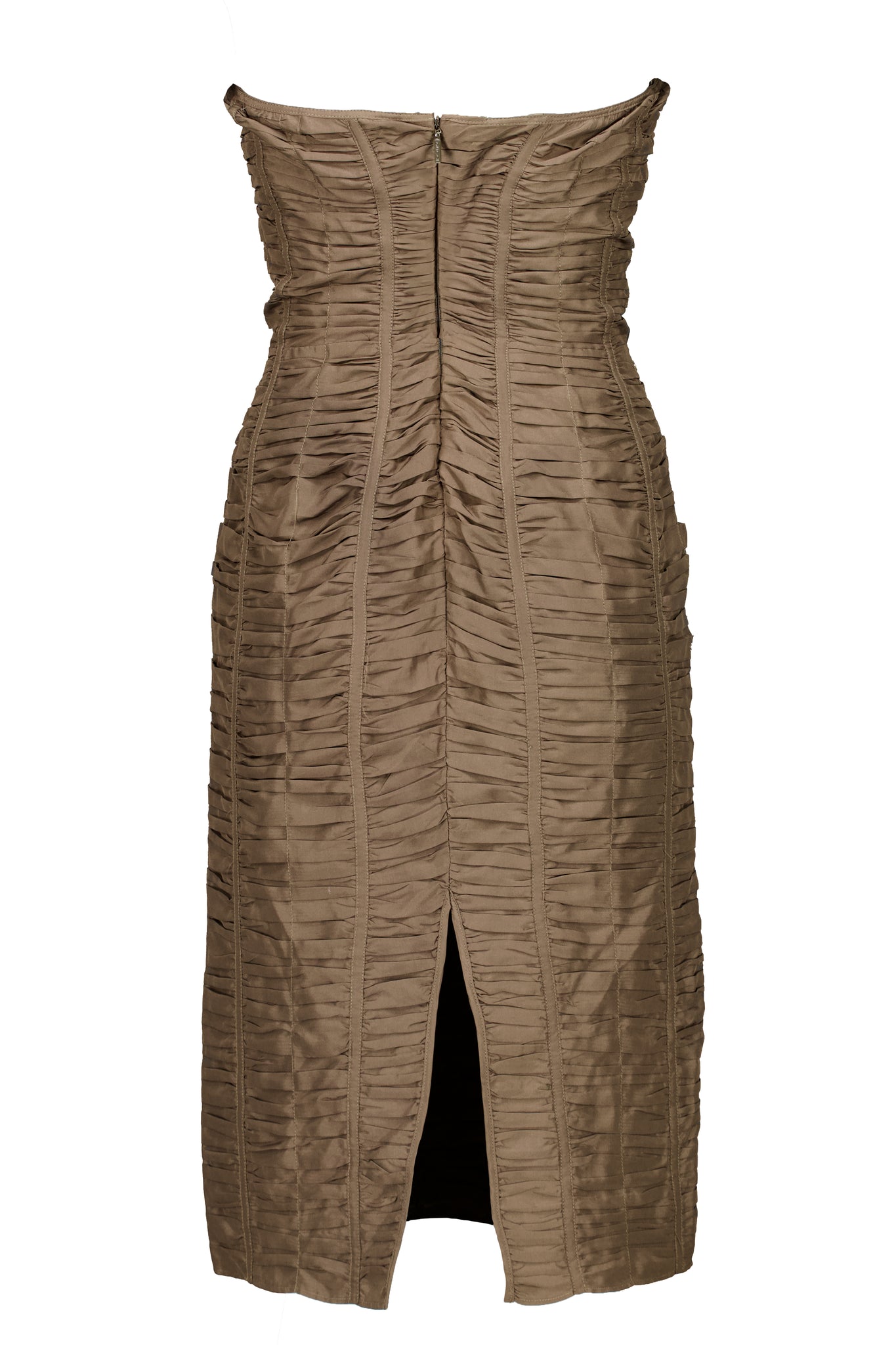GUCCI BY TOM FORD RUCHED CORSET DRESS FROM SPRING SUMMER 2001 RUNWAY COLLECTION. DRESS IN EXCELLENT CONDITION, SOME LOOSE THREADS ON THE RUCHING.