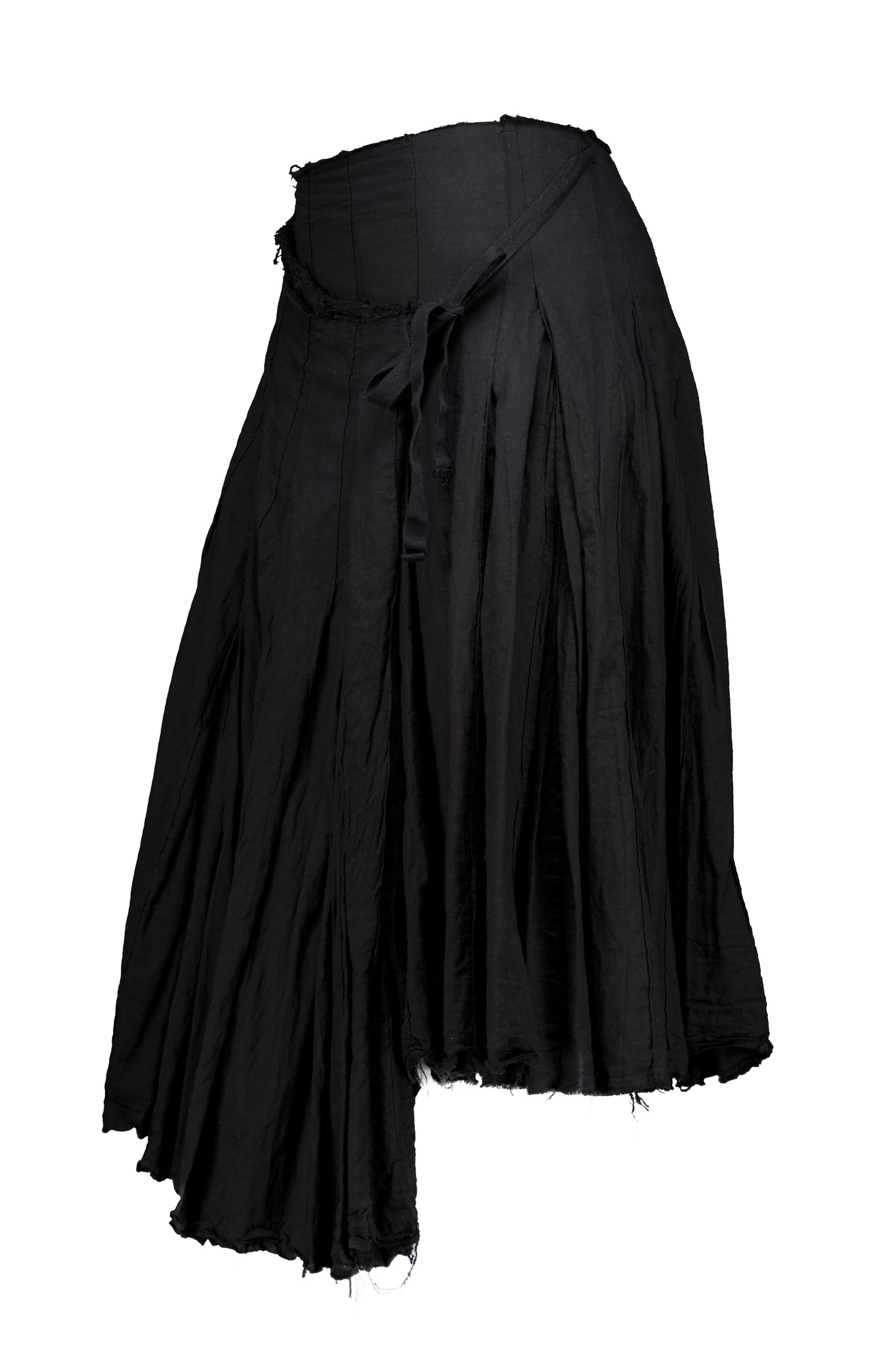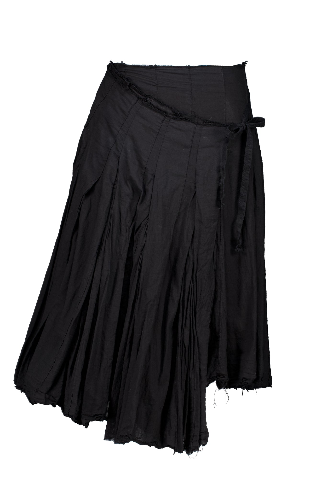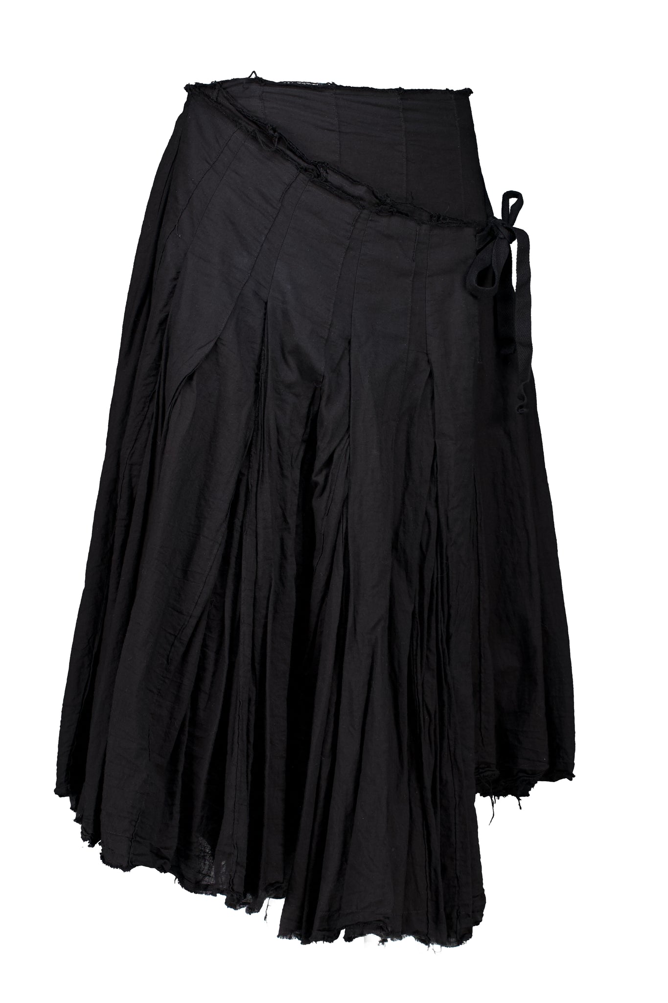 JUNYA WATANABE DOUBLE DOUBLE SKIRT FROM SPRING SUMMER 2005 RUNWAY COLLECTION. THIS SKIRT IS AMAZING, ITS FULL AND CONSTRUCTED OF ONE LARGE SKIRT THAT FOLDS AND TIES AROUND AT THE FRONT. IN GOOD CONDITION, SOME TORN SEAMS WHICH HAS BEEN REATTACHED.