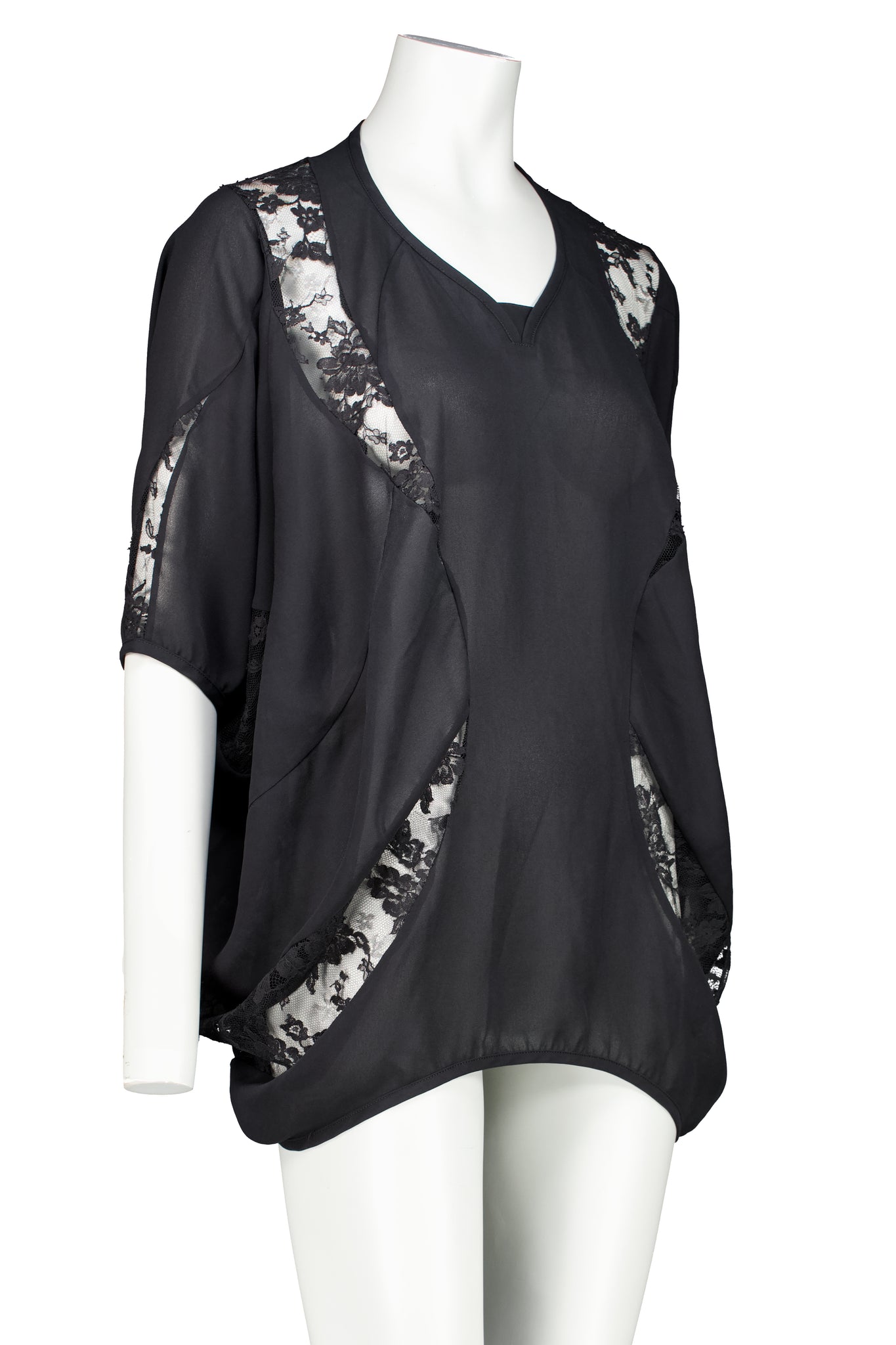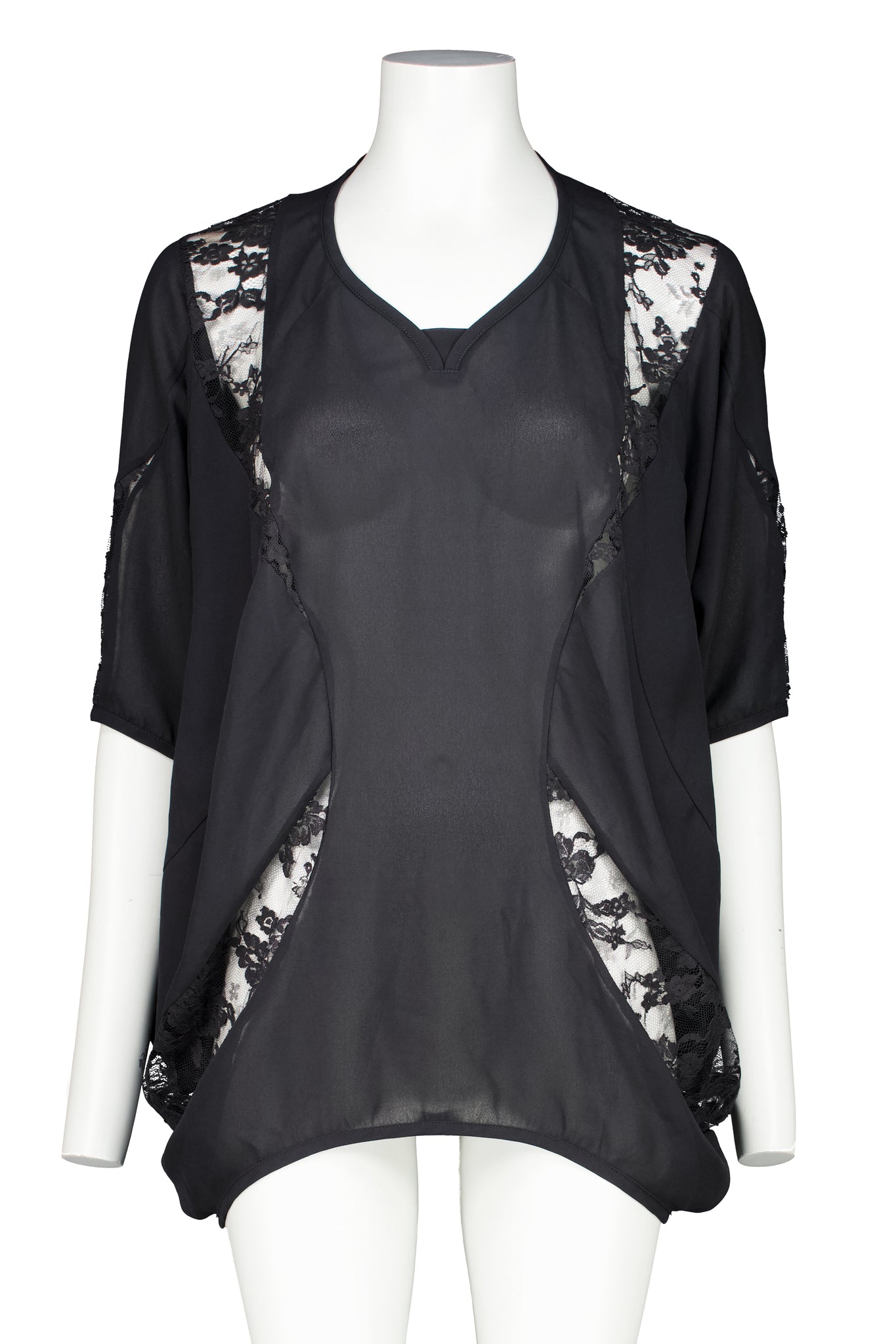 JUNYA WATANABE SPRING SUMMER 2013 JERSEY TOP WITH LACE INSERTS. IN EXCELLENT CONDITION.