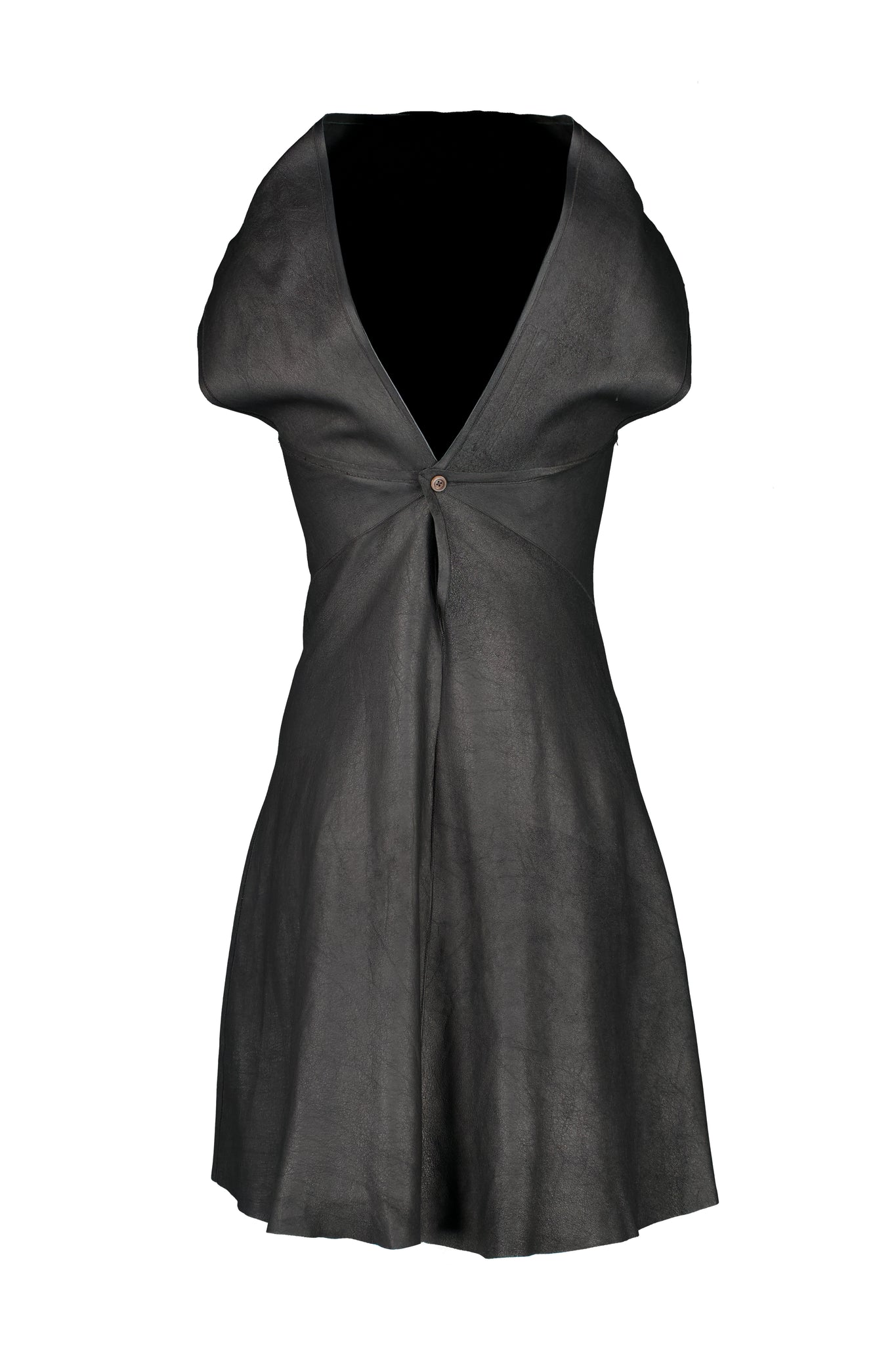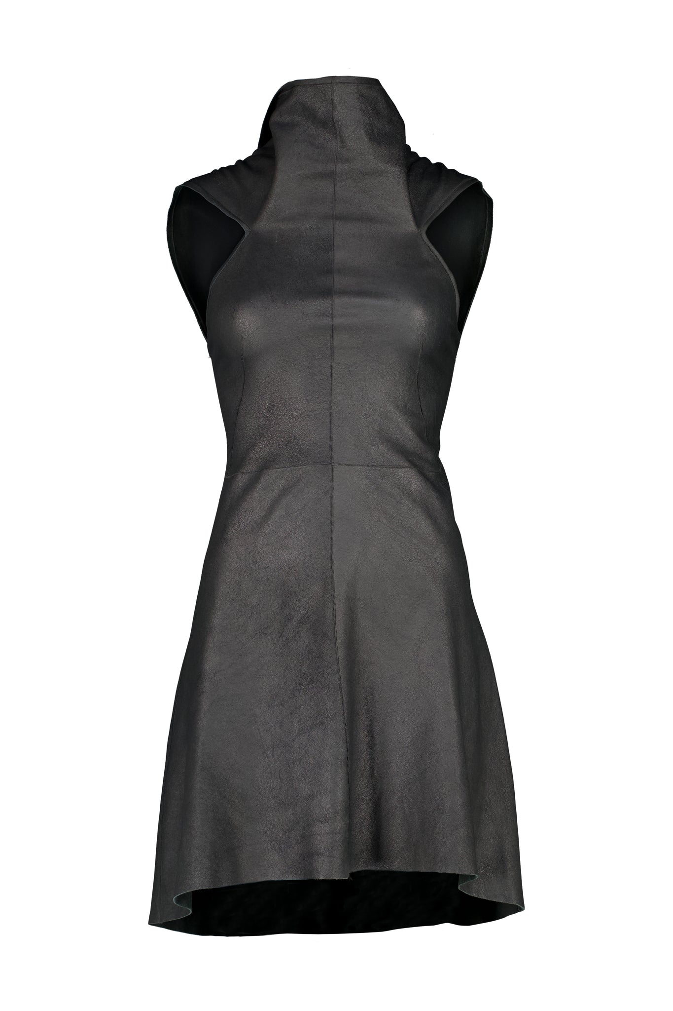 RICK OWENS LEATHER DRESS FROM “GLEAM” FALL WINTER 2010 RUNWAY COLLECTION. IN EXCELLENT CONDITION.
