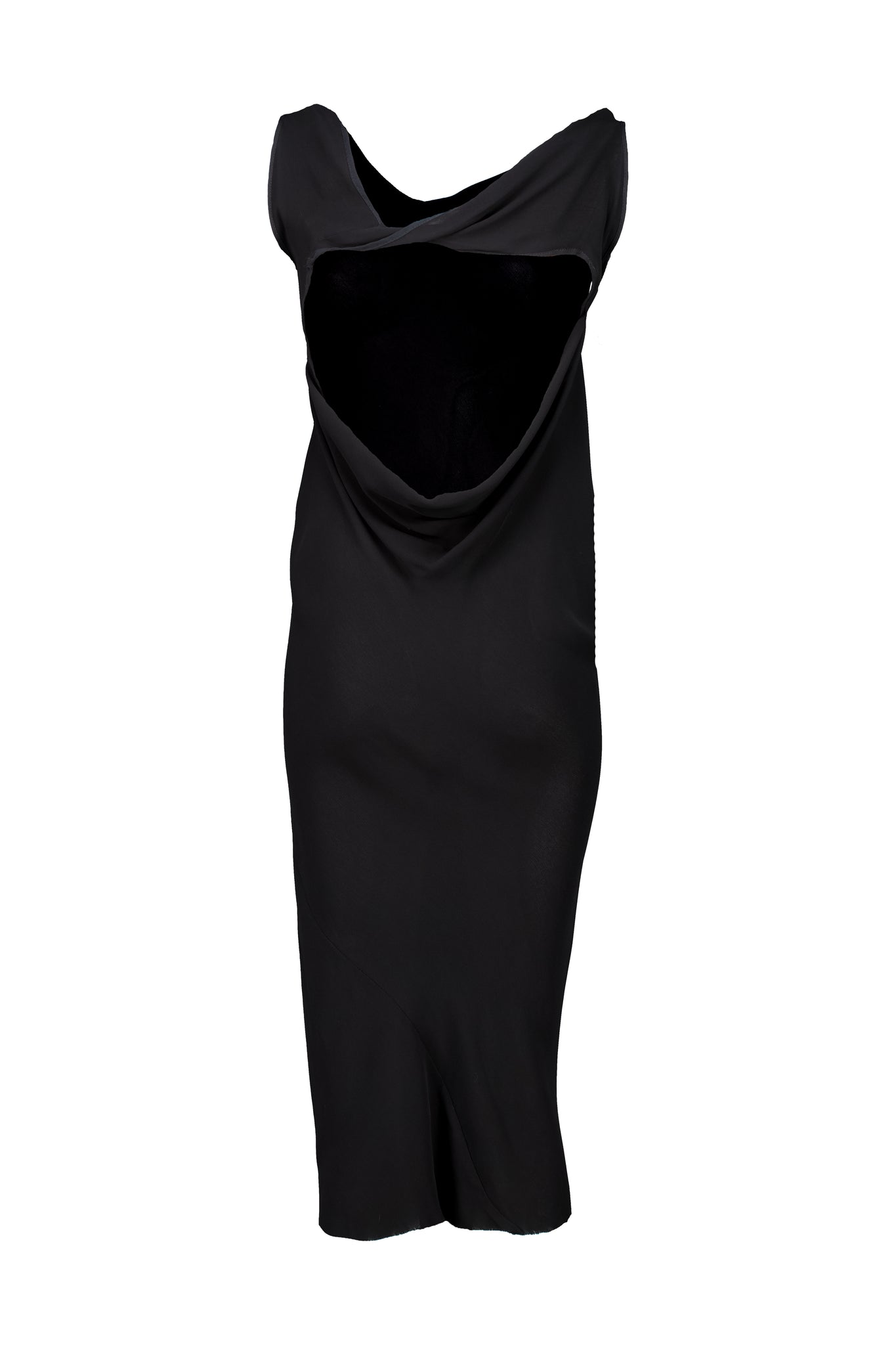 RICK OWENS BIAS CUT DRESS FROM "SCORPIO" SPRING SUMMER 2005 RUNWAY COLLECTION. THIS PIECE IS SUPER SPECIAL FROM THE EARLY COLLECTIONS OF RICK, THIS IS WHERE HIS EXPLORATION OF THIS CUT DRESS STARTED. IN EXCELLENT CONDITION.
