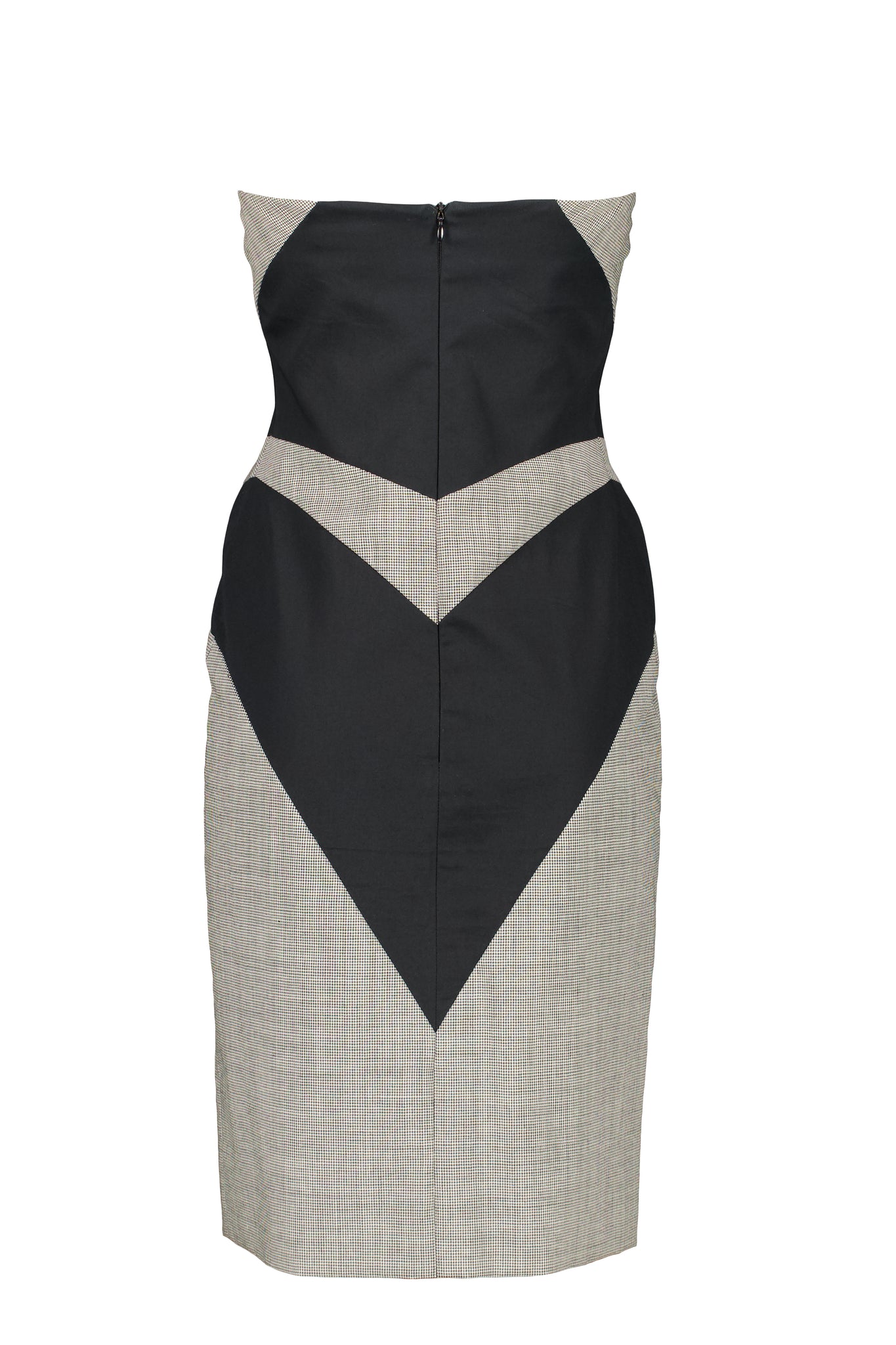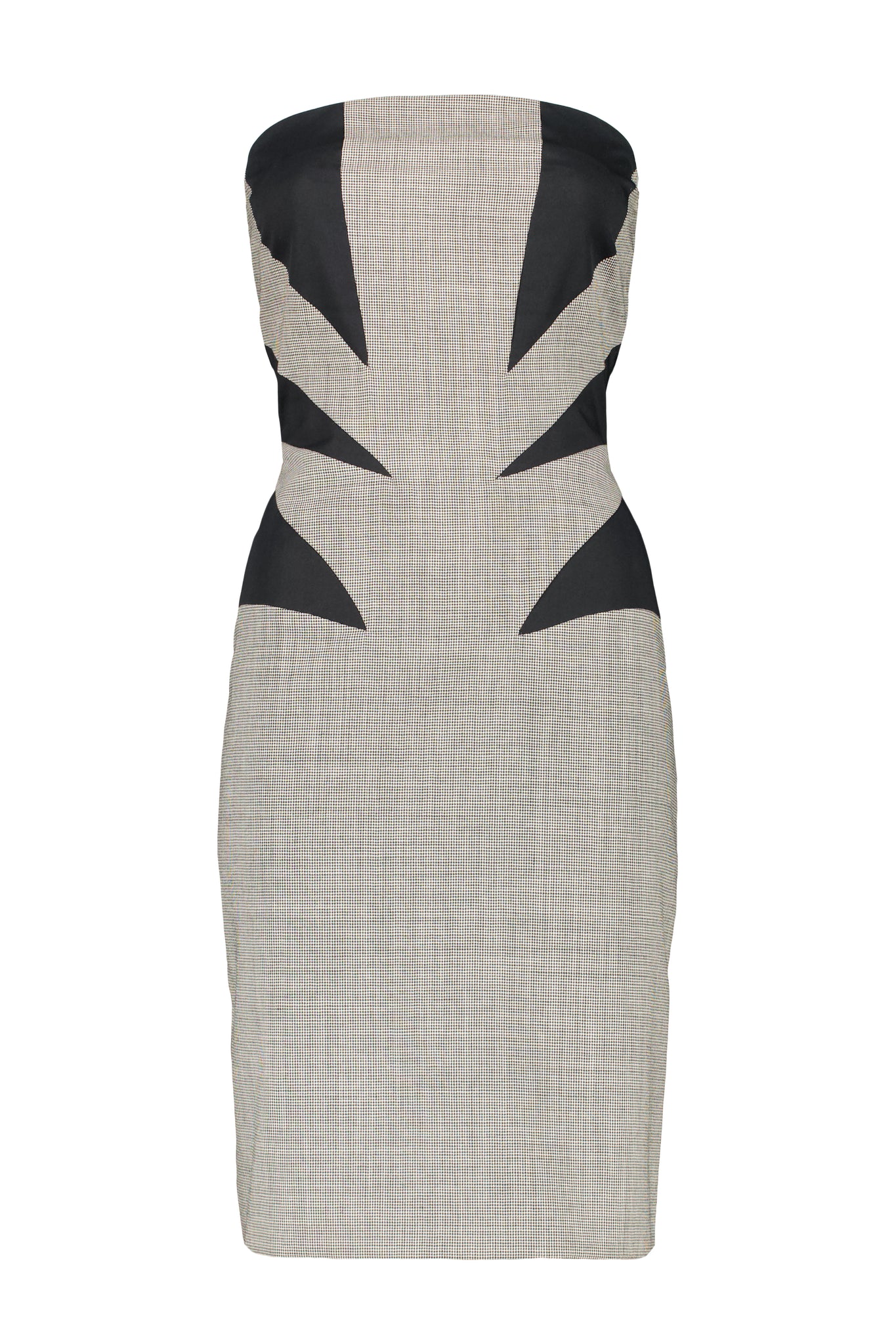 ALEXANDER MCQUEEN GEOMETRIC CUT BUSTIER DRESS FROM ICONIC “GOLDEN SHOWER” SPRING SUMMER 1998 RUNWAY COLLECTION. IN EXCELLENT CONDITION.