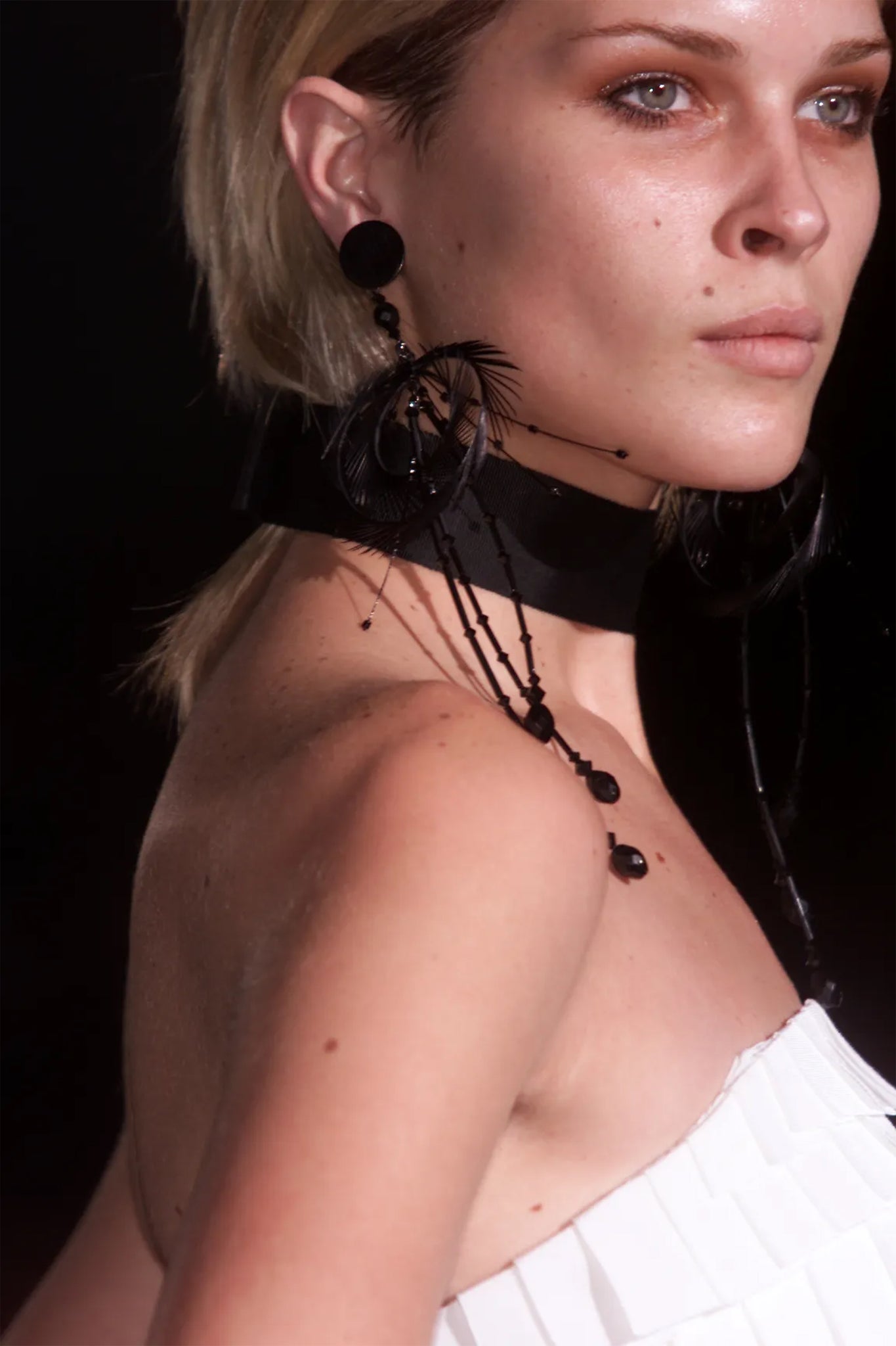 - DRAPPED FEATHER AND BEADED STRANDS