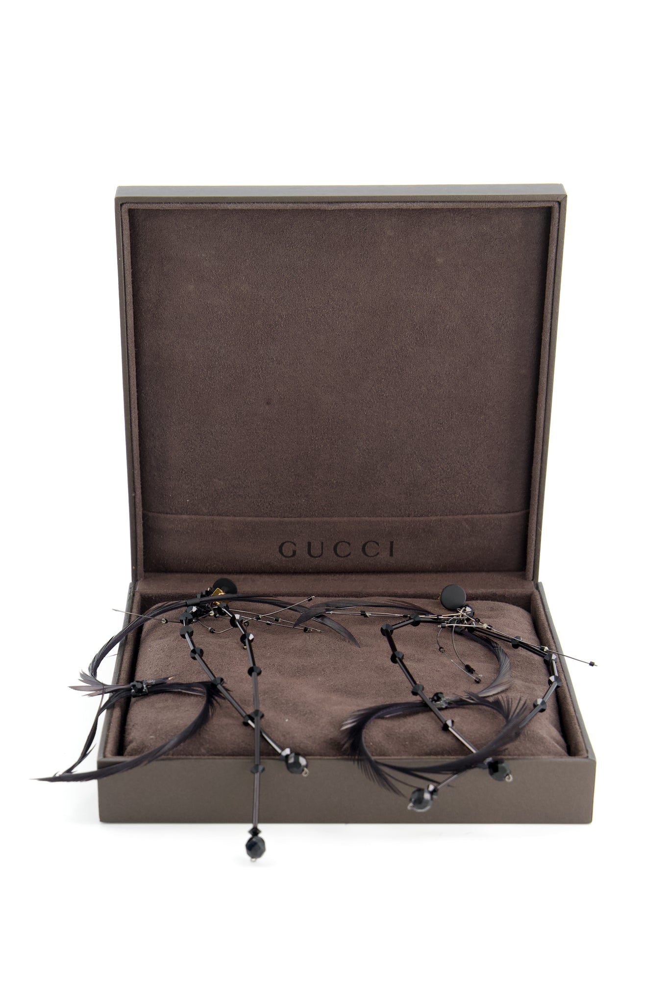 GUCCI BY TOM FORD FEATHER AND STRASS EARRINGS FROM FALL WINTER 2001 RUNWAY COLLECTION. IN EXCELLENT CONDITION. ALTHOUGH FEATHER IS ALWAYS FRAGILE.