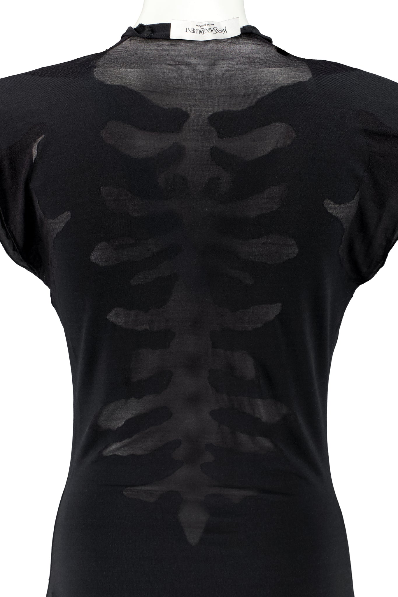 YVES SAINT LAURENT RIVE GAUCHE BY TOM FORD SKELETAL DRESS FROM SPRING SUMMER 2003 RUNWAY COLLECTION. I MEAN COME ON, THIS IS MY BEAUTIFUL DARK, TWISTED GOTH ROMANTIC FANTASY. SUPER LOL RARE. IN EXCELLENT CONDITION, DUE TO AGE AND FRAGILITY OF THE PIECE NATURALLY SOME SMALL PULLS. I BELIEVE THE FABRIC WAS MADE TO AGE THIS WAY.
